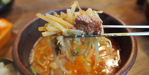 香油和海苔的香味、醋辣醬的酸味、牛肉湯飯的辣味...